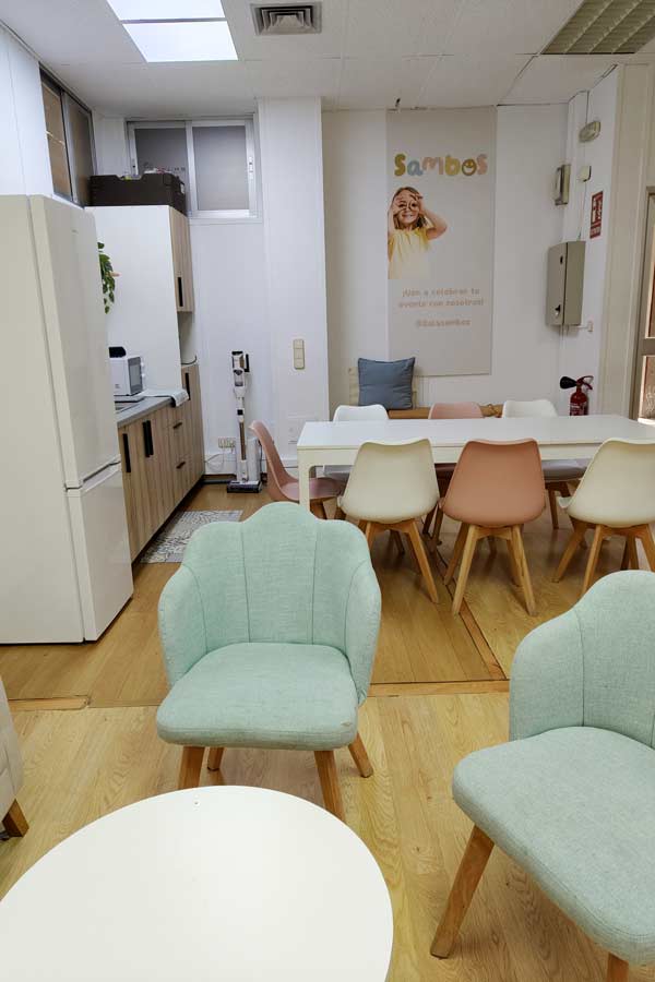 Sambos, en la primera fase, sector Oficios, es una sala privada en Tres Cantos que está pensada especialmente para la celebración de eventos infantiles y familiares en un entorno cómodo y seguro. Está equipada con un parque de bolas construido en madera y un área de juego libre que favorece el juego simbólico, ideal para niños de entre 0 y 6 años. Mientras los más pequeños disfrutan, los adultos pueden relajarse en la zona de descanso o hacer uso de la cocina equipada que facilita la organización de meriendas y celebraciones.