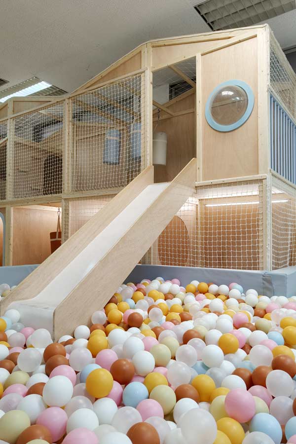 • Parque de bolas  construido en madera, area de juego libre y juego simbólico, con cocina equipada y zona de descanso para adultos